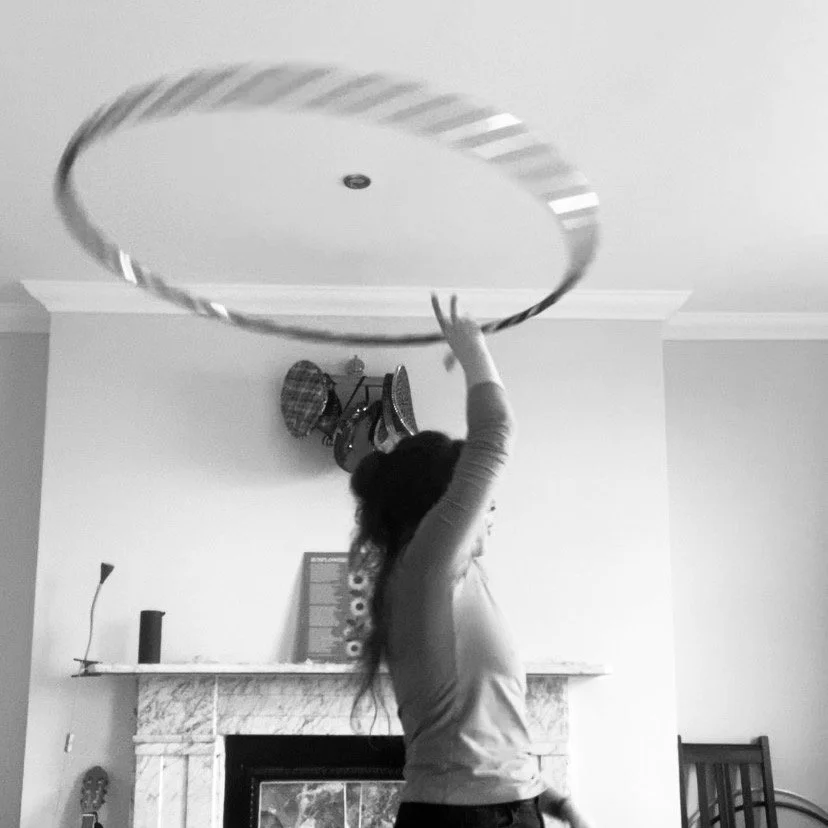 I teach small, weekly classes which are a beginner-friendly blend of hula hoop skills (tricks-based, not fitness hooping) and gentle yoga-based movement.